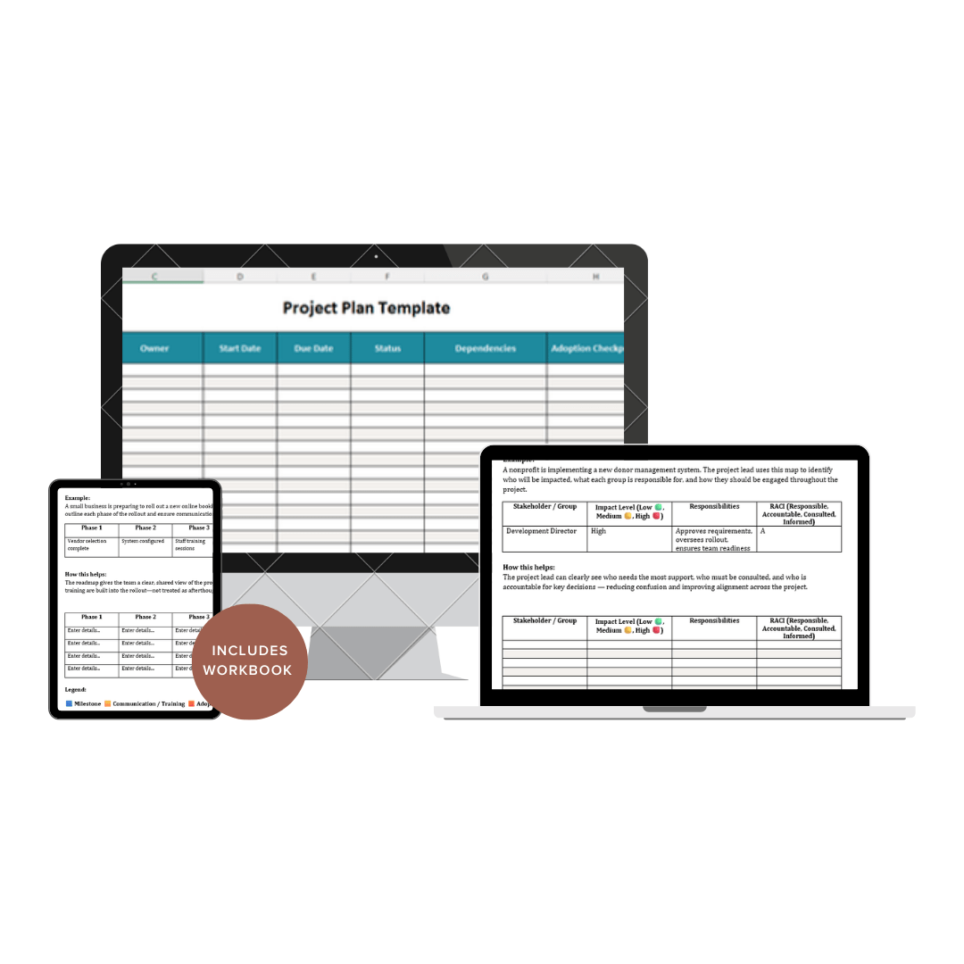 Give your projects the structure, clarity, and momentum they deserve. The Project Management Essentials Bundle equips small business and nonprofit leaders with three core tools to plan, organize, and communicate any project from kickoff to completion.